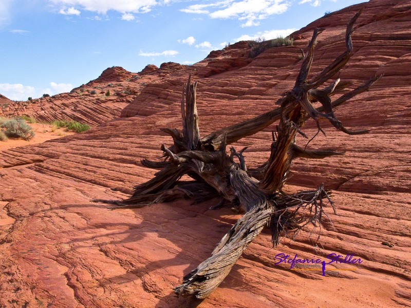 Baumskelett auf Gesteinsformation